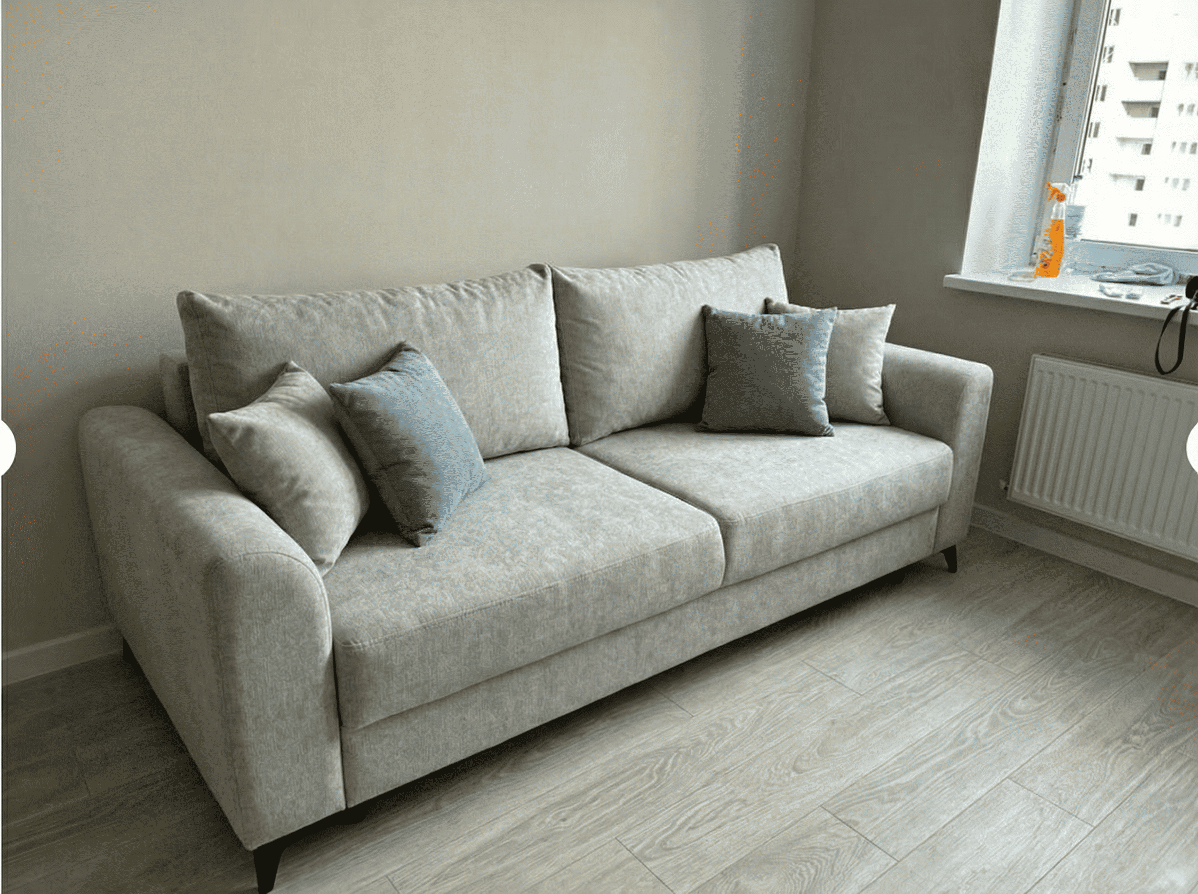 Высокие черные металлические ножки придают дивану не только устойчивость, но и особую выразительность. Этот элемент дизайна подчеркивает современный стиль мебели, добавляя ей уникального шарма и элегантности.