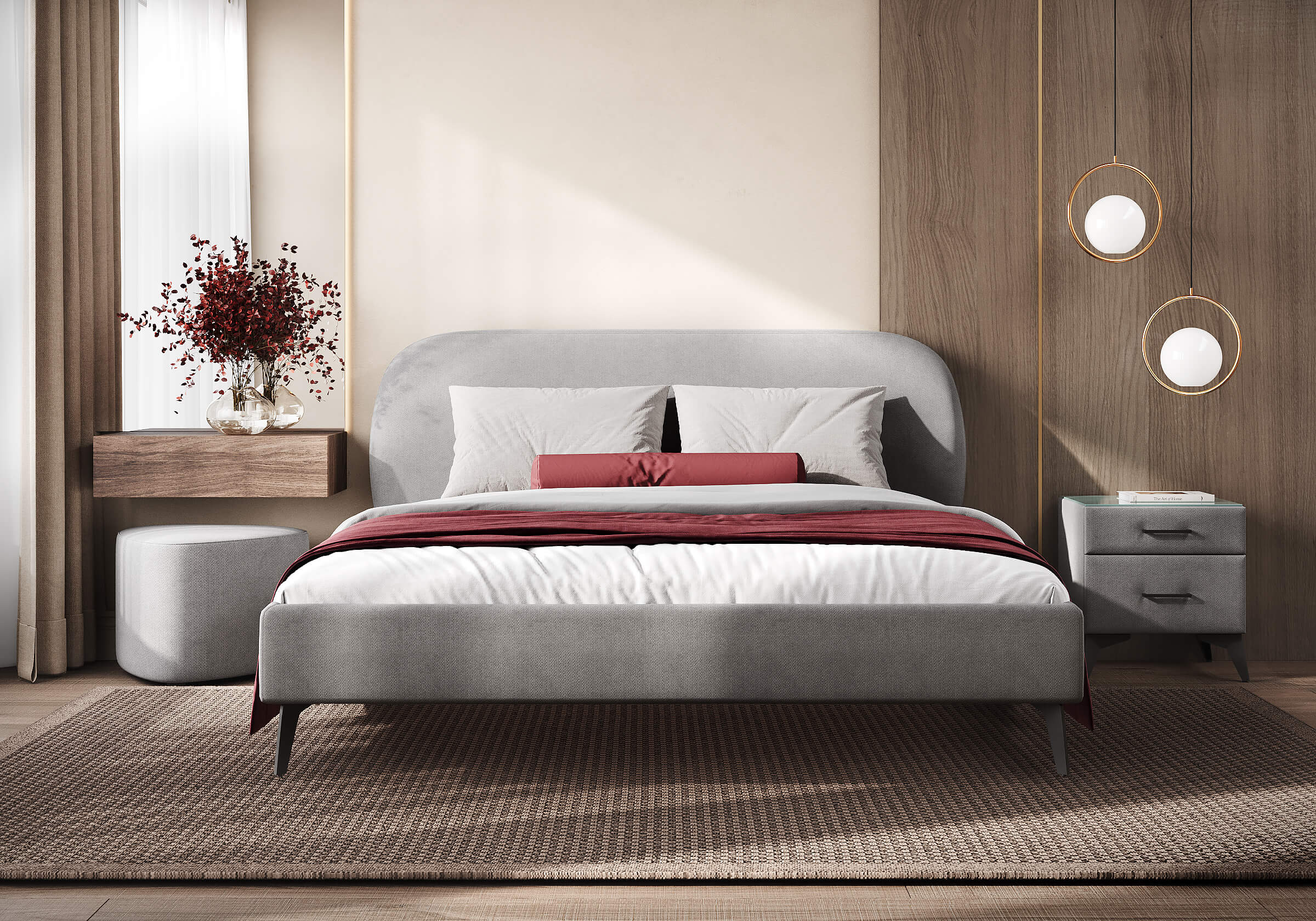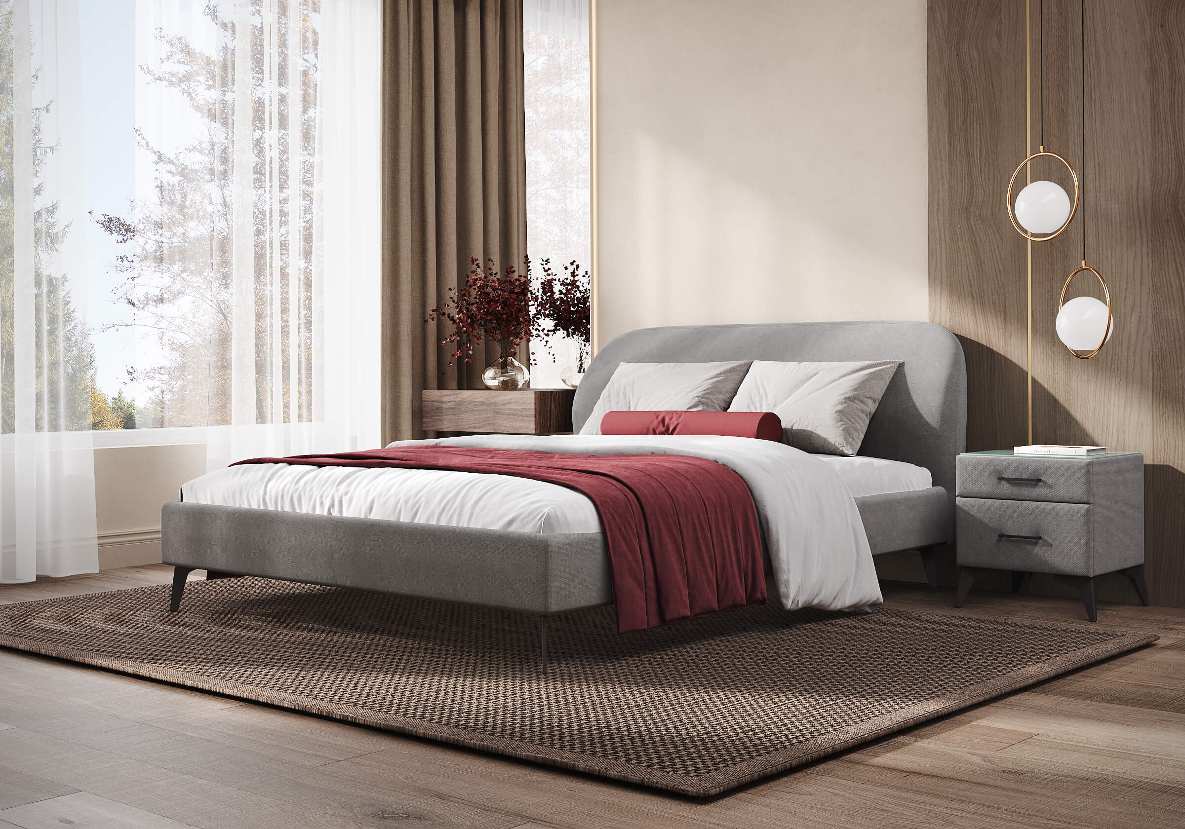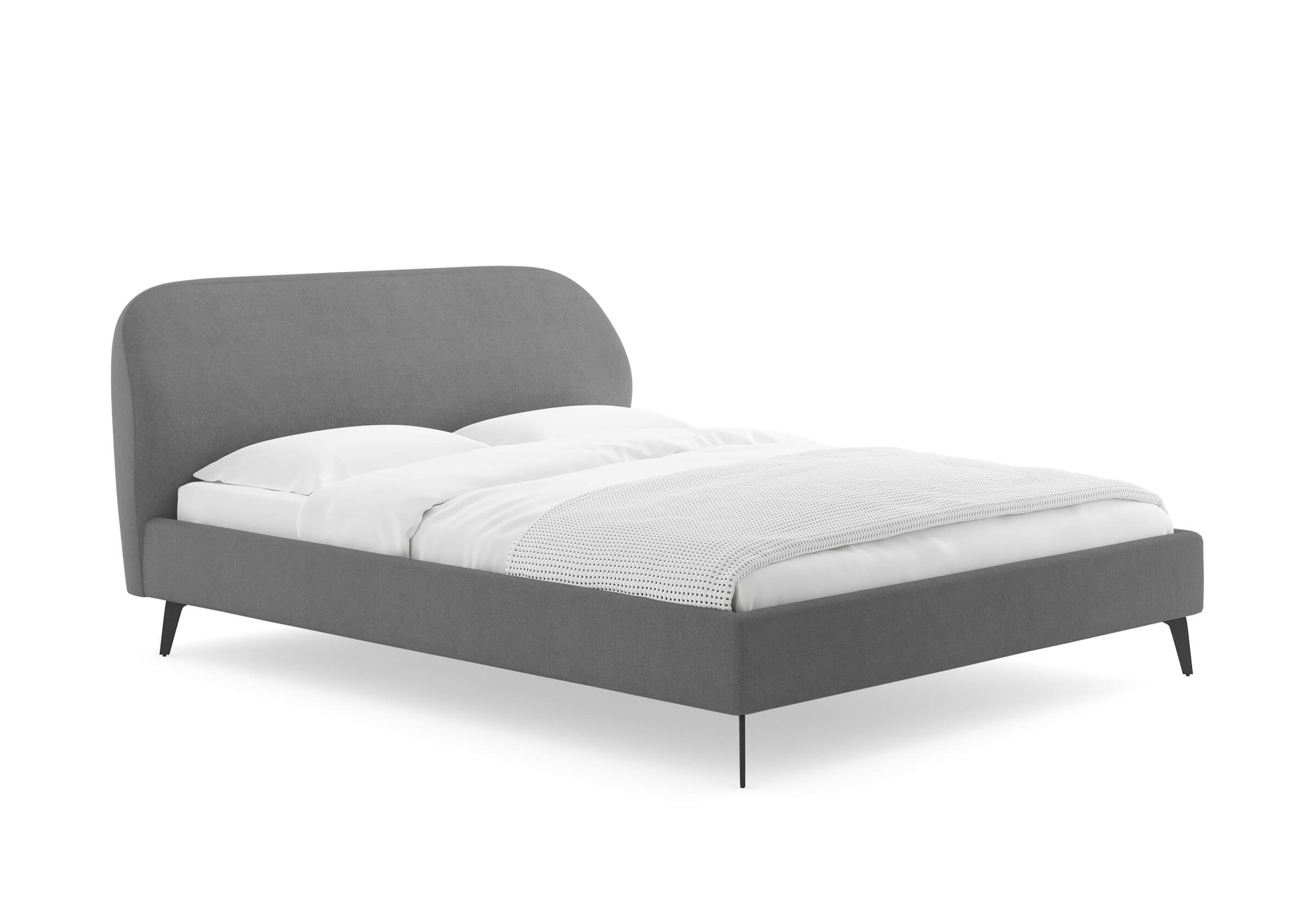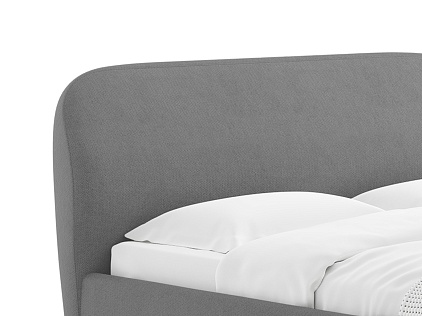 Кровать Katrin сочетает в себе модные тенденции – выглядит легко и лаконично. Мягкая форма изголовья с черными и тонкими опорами выглядят выразительно и подойдут любому современному интерьеру. Задняя часть спинки в ткани, благодаря этому кровать можно установить в центре комнаты. Увеличенная прочность кровати достигается за счет металлического каркаса по периметру. Модель укомплектована ортопедическим основанием с ламелями. Благодаря высокому просвету не возникнет проблем с уборкой, в том числе проходимостью робота – пылесоса. Исполнение доступно во всех видах ткани.