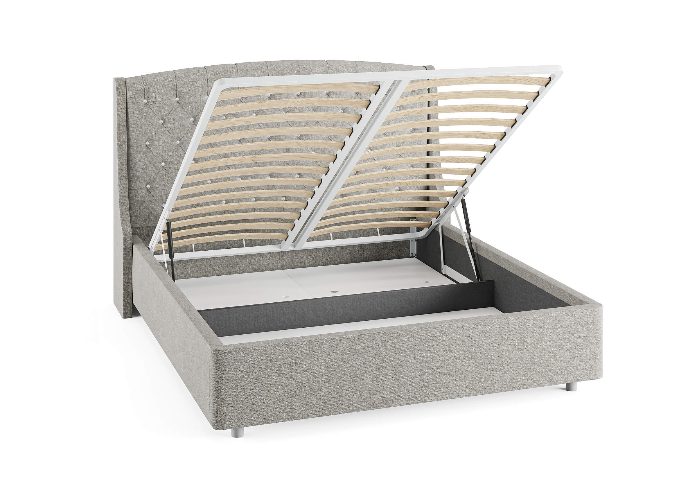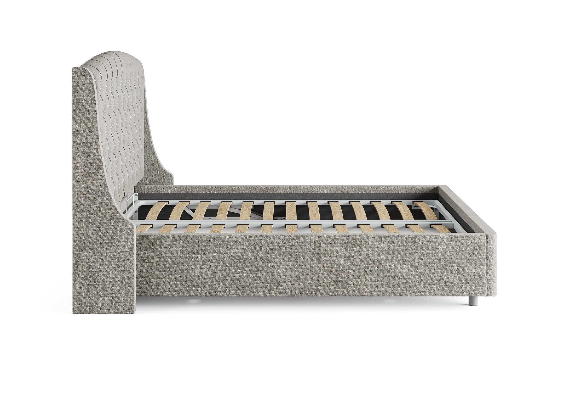 Возможность установки подъемного механизма со вместительным бельевым ящиком. Дно бельевого ящика легко сдвигается для обеспечения уборки под кроватью.
