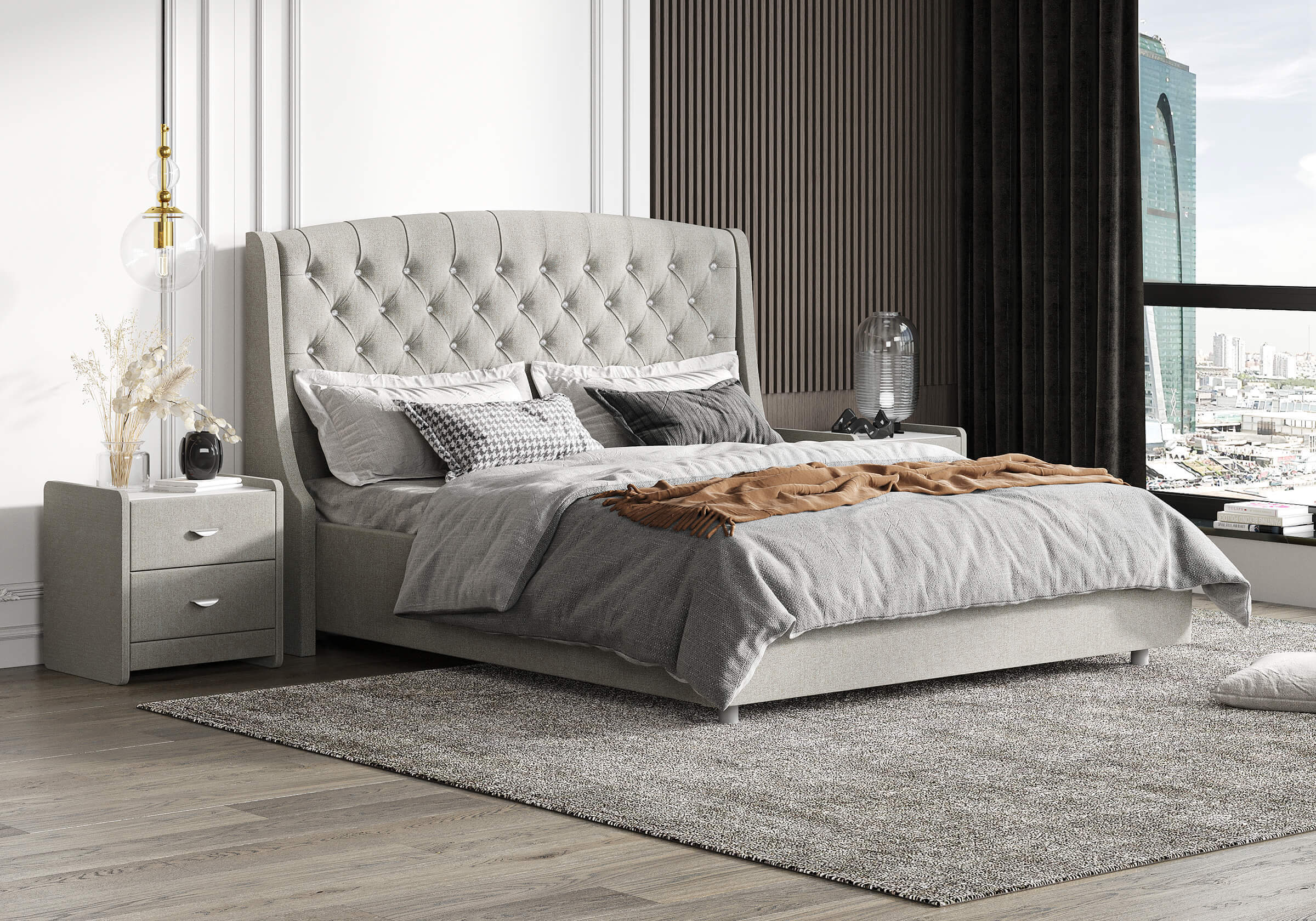 Стильная и комфортная интерьерная кровать. Кровать выглядит гармонично как в классическом интерьере, так и в современном, что открывает простор для смелых дизайнерских решений. При необходимости кровать может быть укомплектована разборным или неразборным металлическим основанием с ламелями, подъемным механизмом с бельевым ящиком, трансформируемым основанием Aquarius.