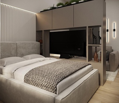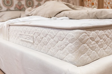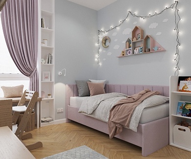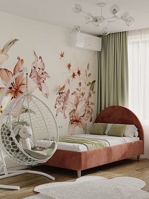 Основание кровати на металлических ножках. Благодаря увеличенной высоте позволяют осуществлять легкую уборку под кроватью, даже с помощью робота-пылесоса.