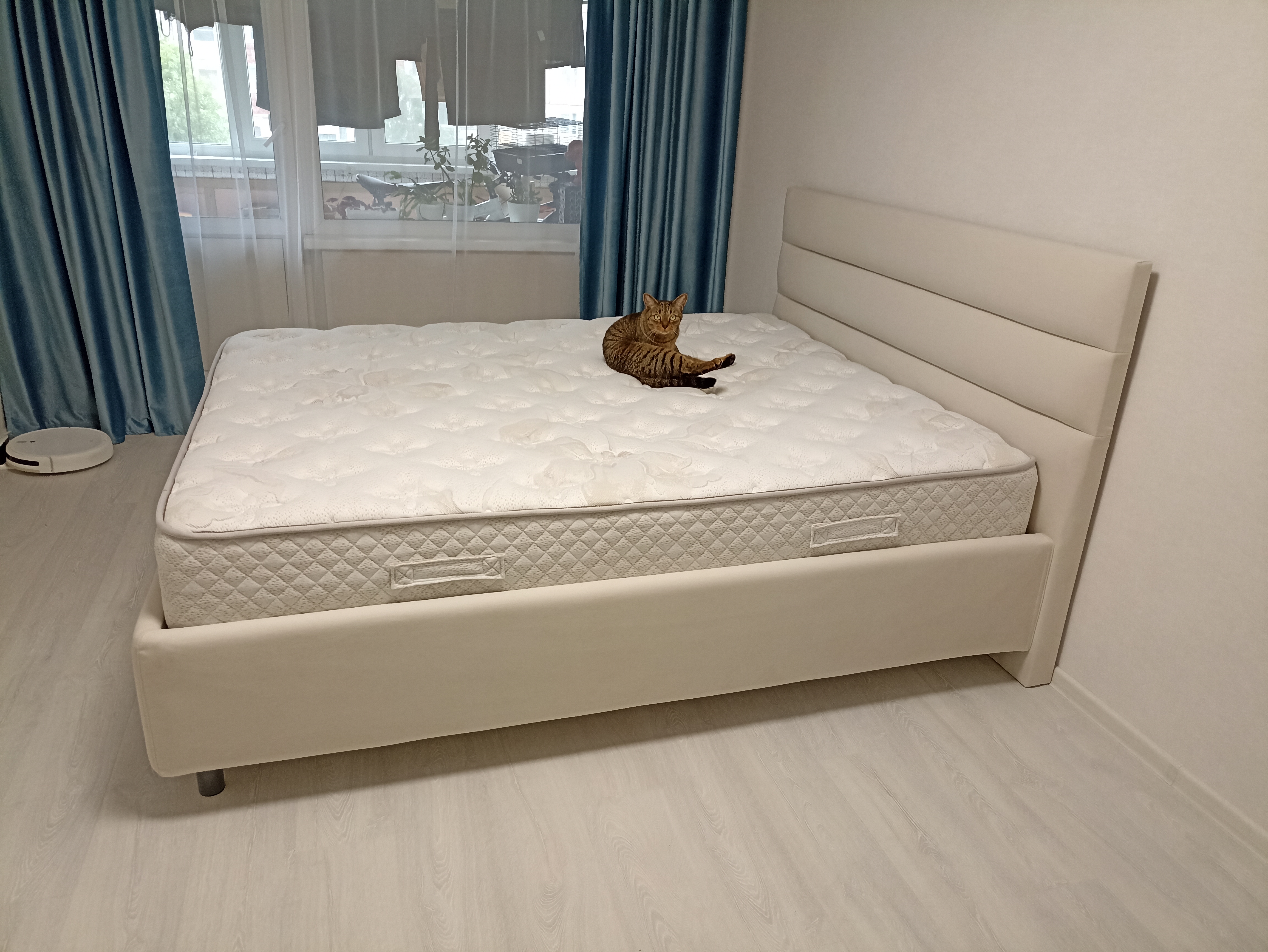 Обалденная кровать!!! Матрас тут же приобрели (Dianta Hard) и очень счастливы, даже котя оценил) Пылесос спокойно проходит, ящик оооочееень вместительный, кровать крепкая, высокая и выглядит все это шикарно! Прям по царски)) Купили кровать, матрас и подушку и доставка и сборка вышли бесплатно! Мастер собрал меньше чем за час. Девушка менеджер просто чудо! (г. Мурманск, Форум) Спасибо ей огромное!!! Покупкой очень довольны!!!