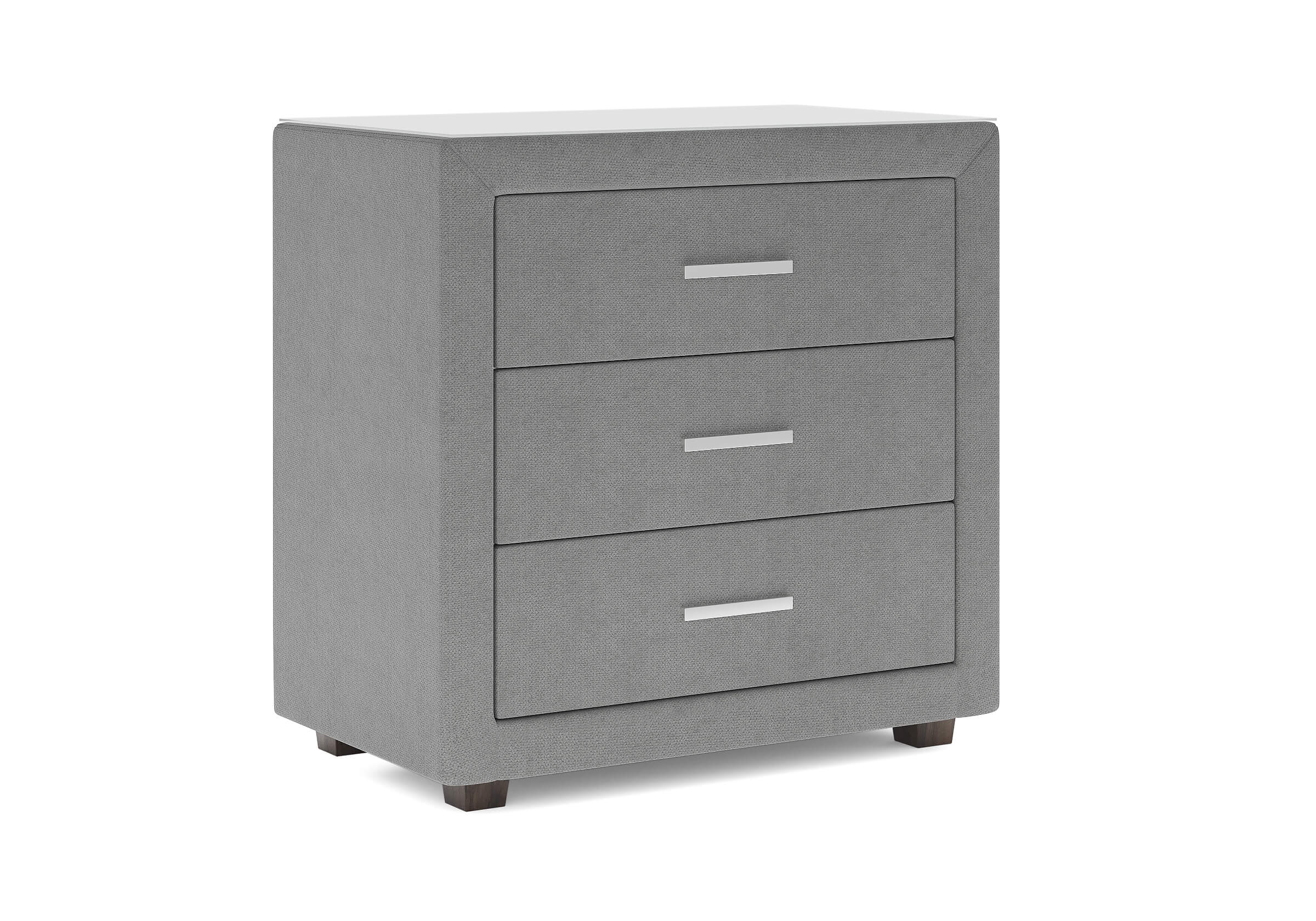 Элегантный комод отличается стильным дизайном и повышенным удобством. Три выдвижных ящика оснащены надёжными направляющими, обеспечивающими лёгкое открытие. Фасад ящиков и стенки комода покрыты обивочным материалом.