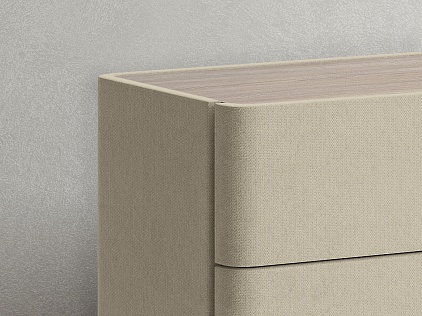Столешница из ЛДСП - дуб сонома. Сочетается со всеми вариантами обивки комода и повышает уровень практичности.